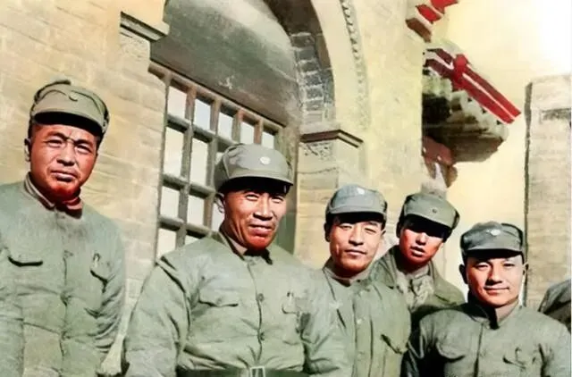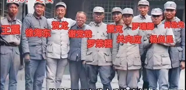 这张更震撼 , 彭老总、朱老总、萧克、邓小平 , 一排人站那儿合影。