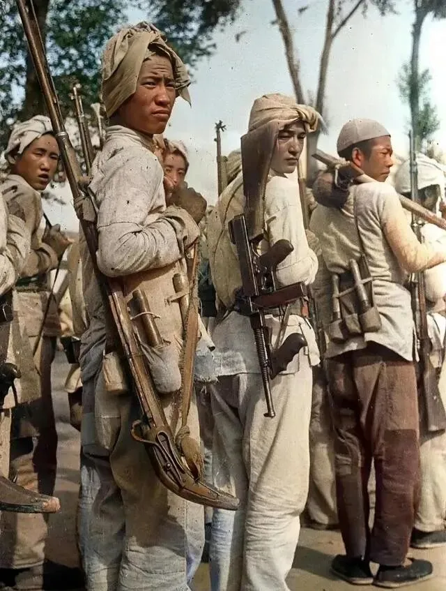 有人拿的是自制燧石枪 , 有人扛的是鸟铳 , 还有缴获的三八大盖。