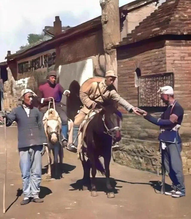 自行车在那个年代是稀罕物 , 摄影师正好拍下了这一幕。