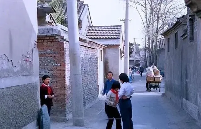 北京胡同里 , 几个小学生跳皮筋 , 无忧无虑的。 不像现在 , 小学就开始上补习班 , 内卷得厉害。