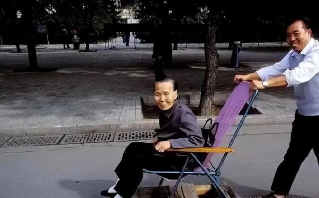 有意思的是 , 那会儿轮椅可能还没普及 , 一个中年人用凳子改装了个轮椅 , 推着老母亲逛街 , 看着还挺方便~