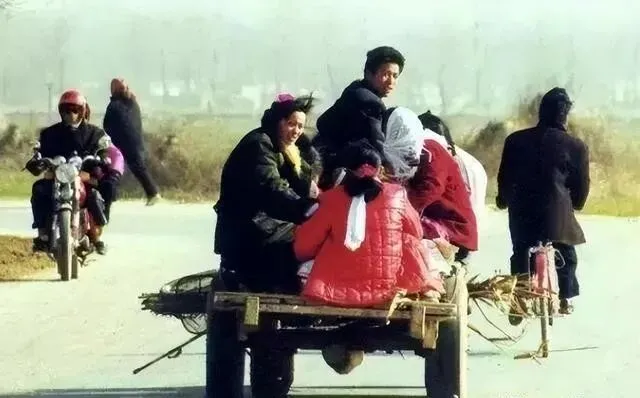 那时候没飞机没高铁 , 走亲戚坐的是农用三轮车。