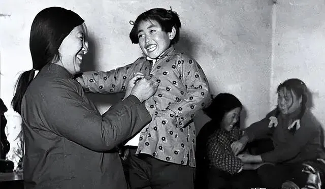 照片里小女孩试新衣的样子 , 天真得让人心疼。 那时候的快乐多简单 , 有糖吃有新衣服 , 就够了。