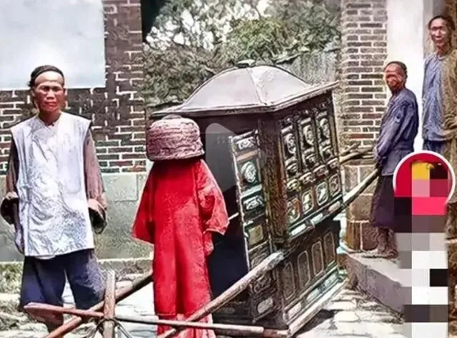 你看这张照片 , 龟奴背着妓女去接客 , 为啥背着?因为那小脚走几步就累 , 走几步就疼 , 根本走不动。