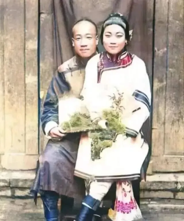 清末还有对夫妻的合照 , 俩人看着挺开心 , 这和印象中那个年代的保守完全不一样~