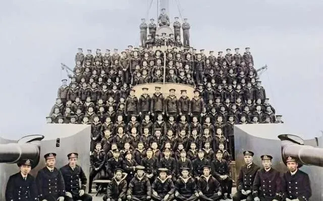 还有"海琛"号巡洋舰全体官兵的合影 , 精神头倒是挺足。