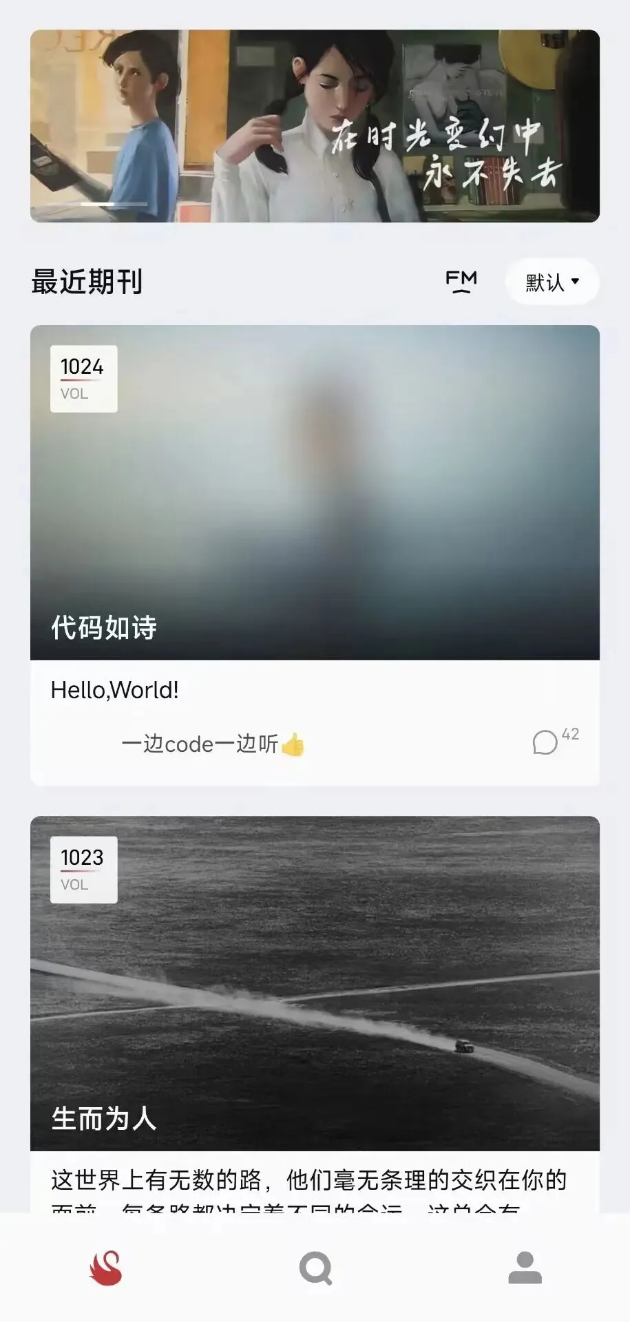 因为现在无法注册落网这个名字,所以改名雀乐,不过他们依然还是主打国内外独立音乐,界面非常简洁,首页是期刊和 FM