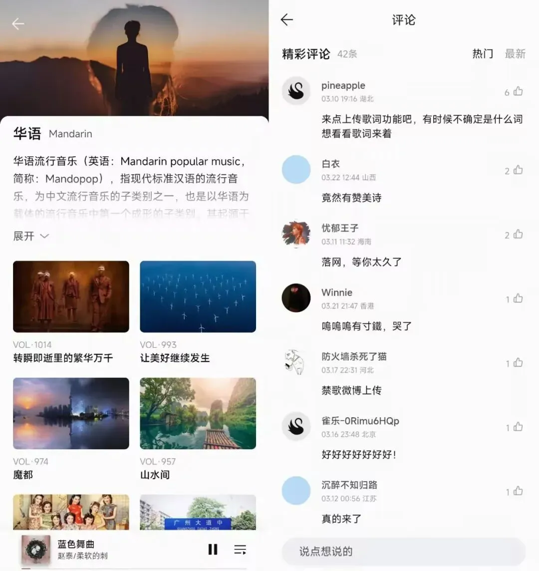 不过好的是雀乐支持评论,看着评论听听歌还是不错的,回归音乐的本质