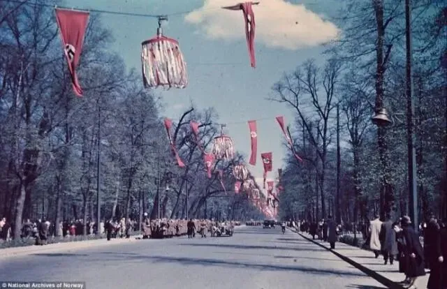 这组旧照片是1937年由当时在德国工作的挪威公民托马斯·诺依曼在德国柏林拍摄的。柏林的街道上有一面纳粹旗帜。
