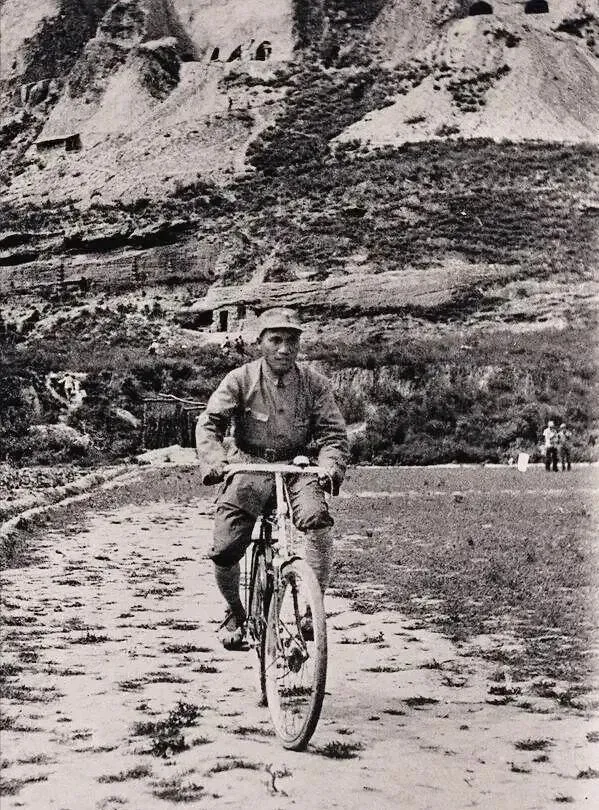 1938年 , 朱老总在延安骑自行车 , 这张太稀罕了!