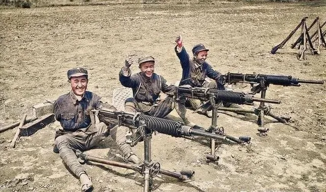 你看这位机枪手 , 手腕粗得吓人 , 钢枪擦得锃光瓦亮。