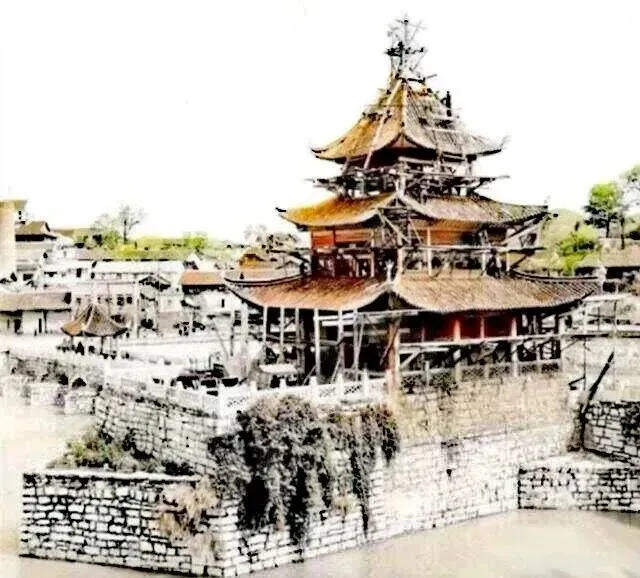 三层木质阁楼,六角攒尖顶,黑瓦上长着青苔,楼前的石栏杆上,坐着晒太阳的老人,手里摇着蒲扇,嘴里哼着不知名的调子。