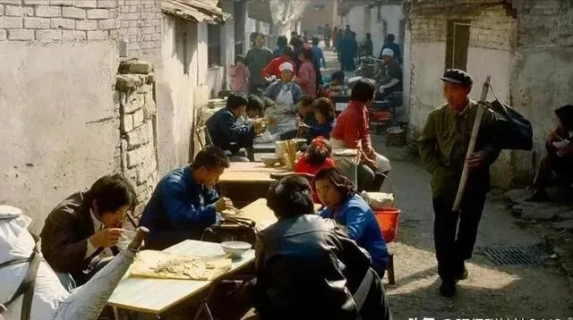 80年代的集市 , 饭菜几分到几毛钱。