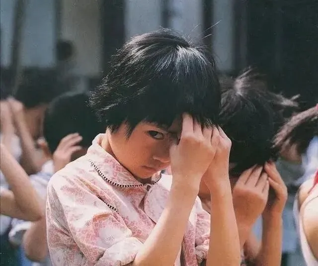 做眼保健操那小姑娘 , 眼睛偷偷睁开在看老师呢。 你们小时候是不是也这样干过?哈哈 , 被抓到就完蛋~