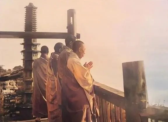 峨眉山金顶那张倒是让人平静 , 僧人对着云海祷告 , 远处飘渺 , 比现在看起来还像仙境。