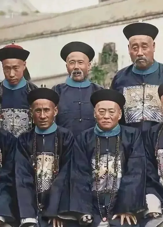 看看真实的 , 这几位应该是四品以上 , 挂着朝珠呢。