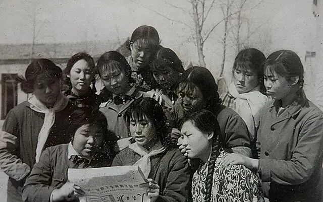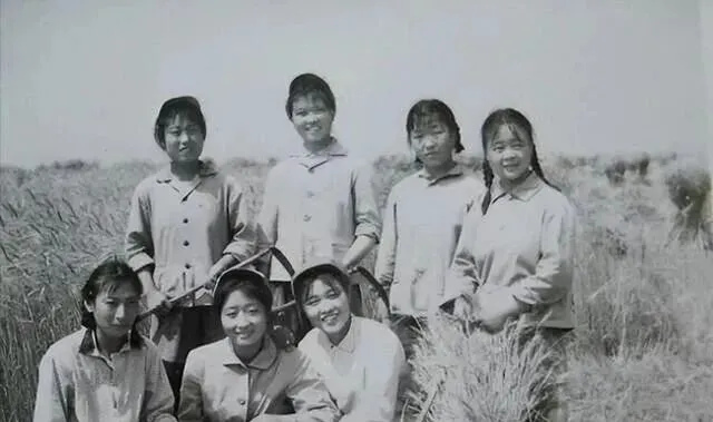 图中这群女知青站在麦浪里,衣服都是直身的棉布褂子,扣子排得齐齐的,背后篓口露出几根稻草,风顺着麦梢吹过来,刘海被吹得有点乱,她们偏偏笑得稳当,奶奶看这张时总会说一句,那个时候人心里亮,照出来才亮,现在拍照会打光会修图,可那份从里往外冒的精神头,真不太好复刻了。