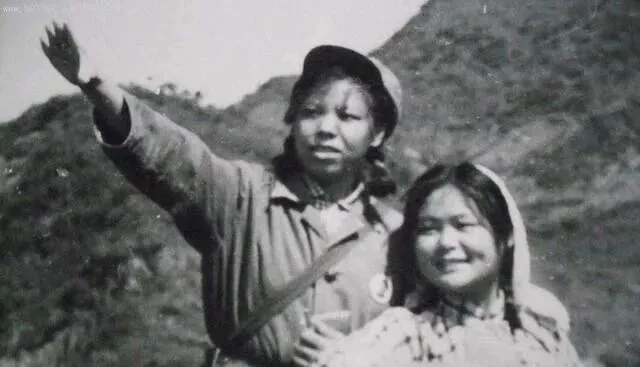 这张抓拍的有意思,前面的胳膊抬得高高的,袖口扣子没对齐,后面的姑娘笑着眯眼,背后山坡一层一层的,像旧时代的书页,翻过去就不回头了,以前上山下乡一去就是几年,现在出趟门坐高铁当日往返,对比一摆上来,才知道时间把人的胆子养大了。
