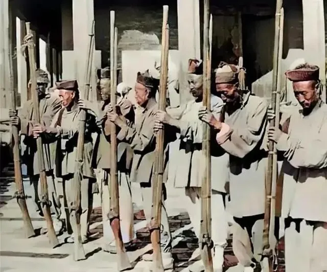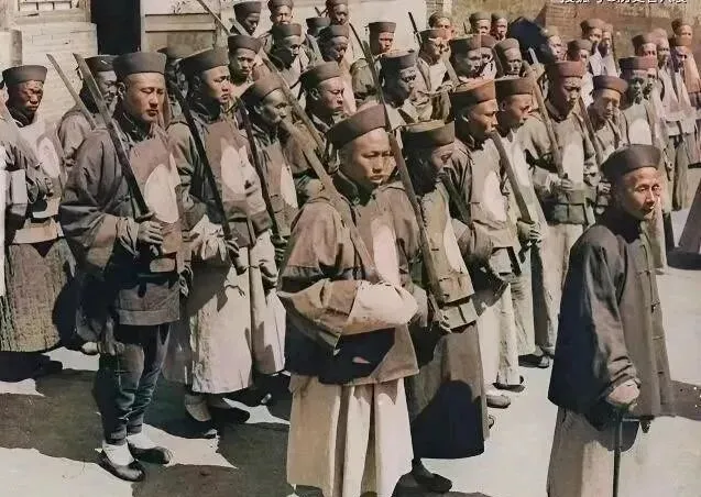 服装落后 , 武器落后 , 发型落后 , 思想更落后。 老式清军有个特征 , 你仔细看 , 袖子比裤子还长!这设计我到现在都没想明白。