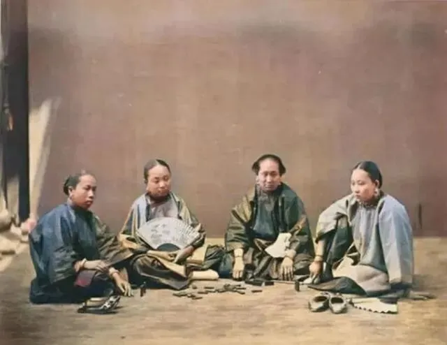 苏州有钱人家的妇人在玩牌 , 明显是摆拍 , 但起码穿得体面。