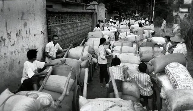 天不亮就得去排队 , 一家老小齐上阵 , 把粮食拉到粮站。 我听老一辈讲 , 大概是亩产的16%要交上去 , 家里十亩地 , 一年得交一千多斤粮。