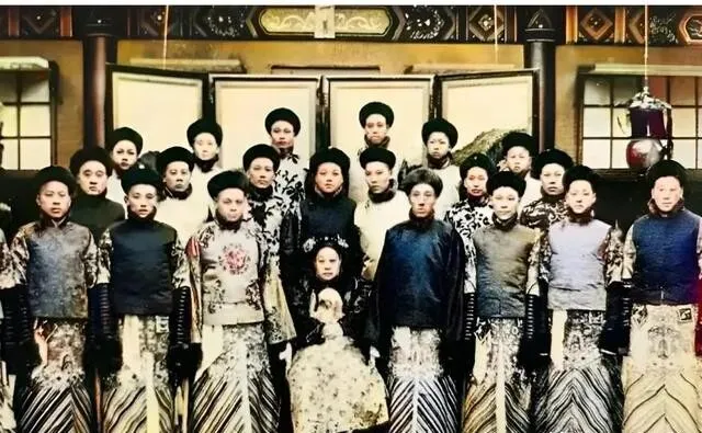 瑾妃坐中间 , 周围站了21个太监 , 排场是有了 , 但你仔细看那些太监的表情......