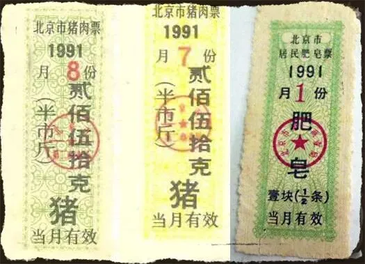 91年北京的猪肉票、肥皂票,三十多年过去了,还保存着这些票据的,太难得了!