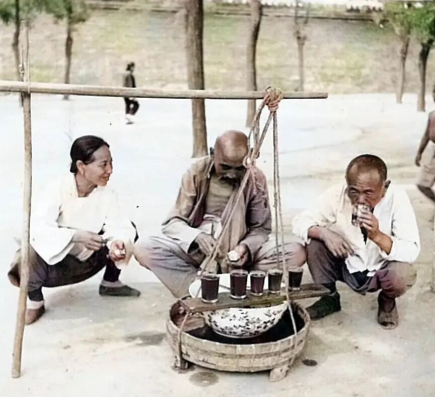 卖冰水的挑子。直接就地蹲下喝一杯,倒也方便