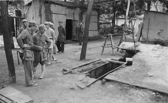 八路军指挥官在查看地下掩体 , 这些工事 , 在战时能救命。