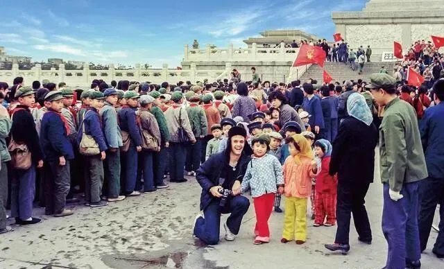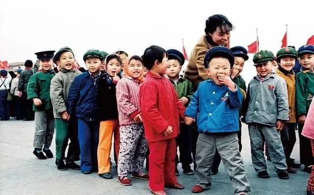 照片是两个外国摄影师拍的 , 一个英国人迈克·埃默里 , 一个日本人秋山亮二。 他们80年代来中国 , 专门拍孩子。 天安门广场上一群小朋友围着合影 , 脸上那种笑 , 没有任何表演成分 , 就是单纯的开心。