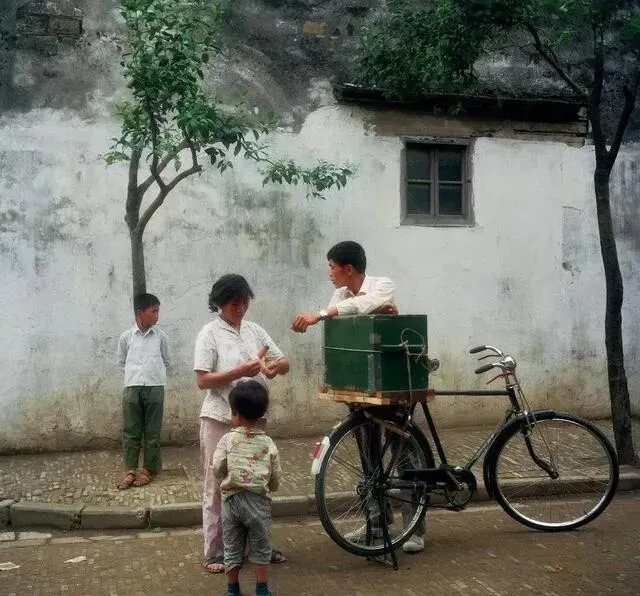 还有骑车卖冰棒的 , 太阳帽一戴 , 冰棍箱往后座一绑 , 那画面我到现在都记得清清楚楚。 感觉那时候才叫真正活着 , 不慌不忙的。