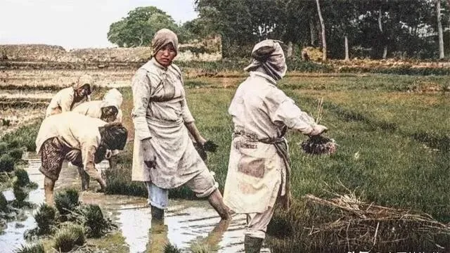 田里的妇女在干嘛?不是插秧 , 是采秧。 从育秧地里把秧苗采出来 , 再一株株插到大田里。