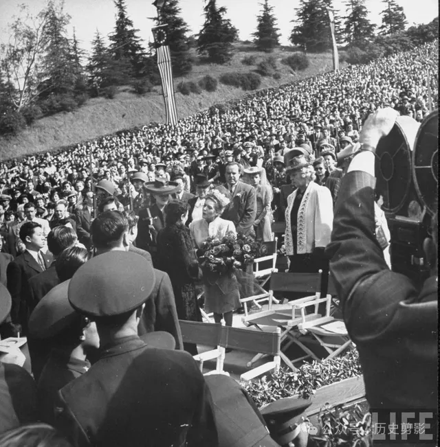 蒋夫人抵达好莱坞露天剧场,加州好莱坞,美国。