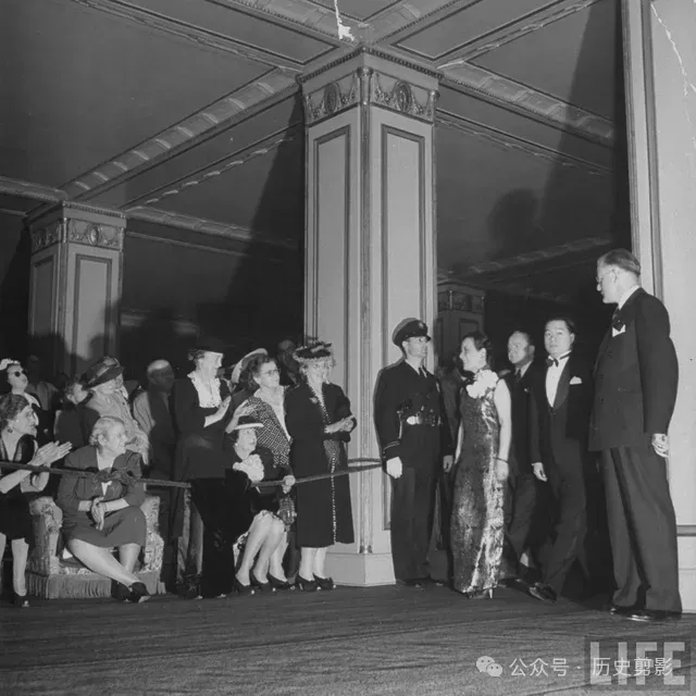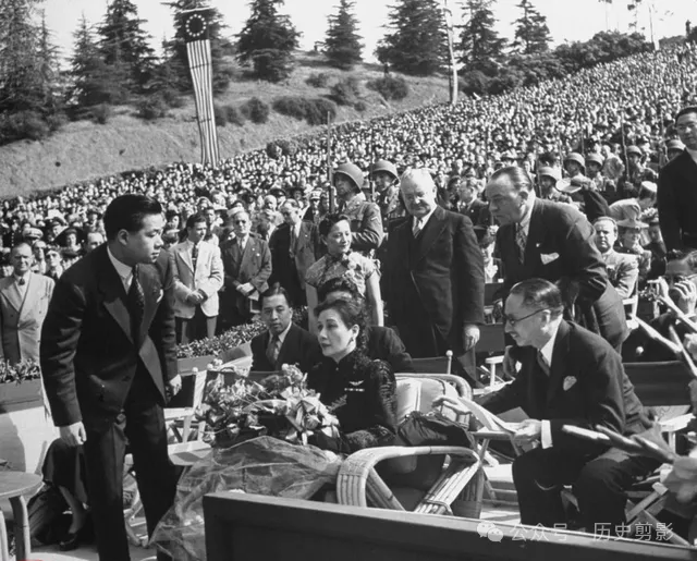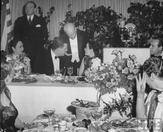 洛杉矶好莱坞圆形剧场欢迎会上,与其他官员一起就坐的宋美龄
