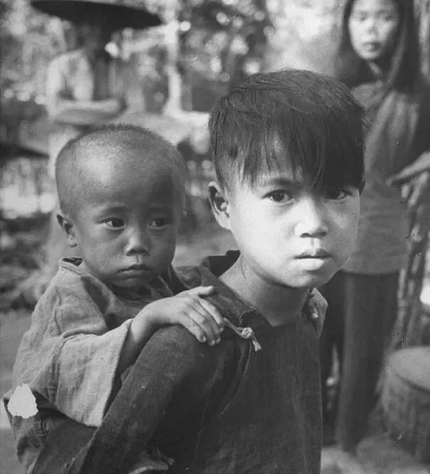 大点的男孩背着个更小的 , 俩人眼神都是迷离的 , 不知道在看哪儿 ,