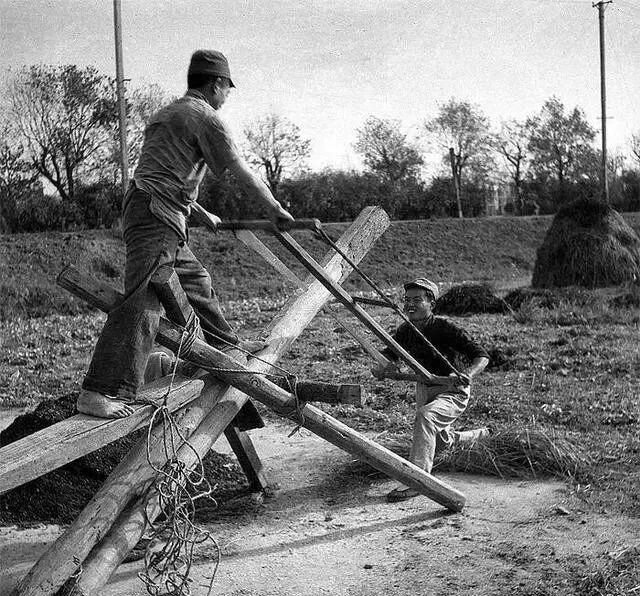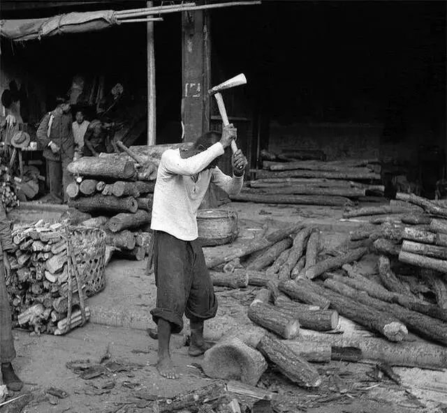 那年头没电锯 , 全靠人力 , 浙江人最在行~