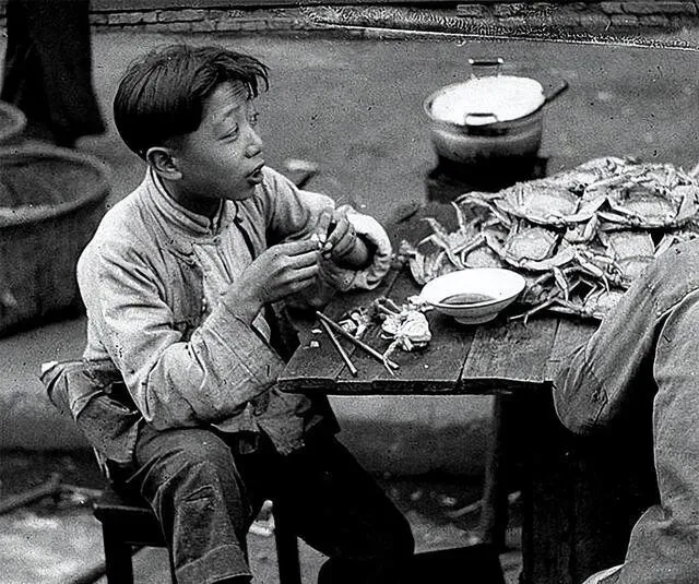 网上疯传一张照片 , 说1945年上海穷人吃大闸蟹艰难度日 ,
