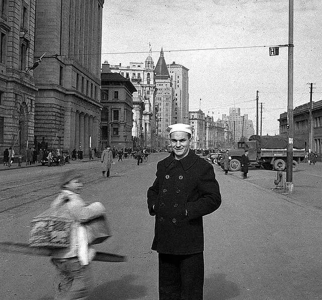 抗战刚结束 , 他跟着战舰停靠上海 , 拿着相机满街拍 ,