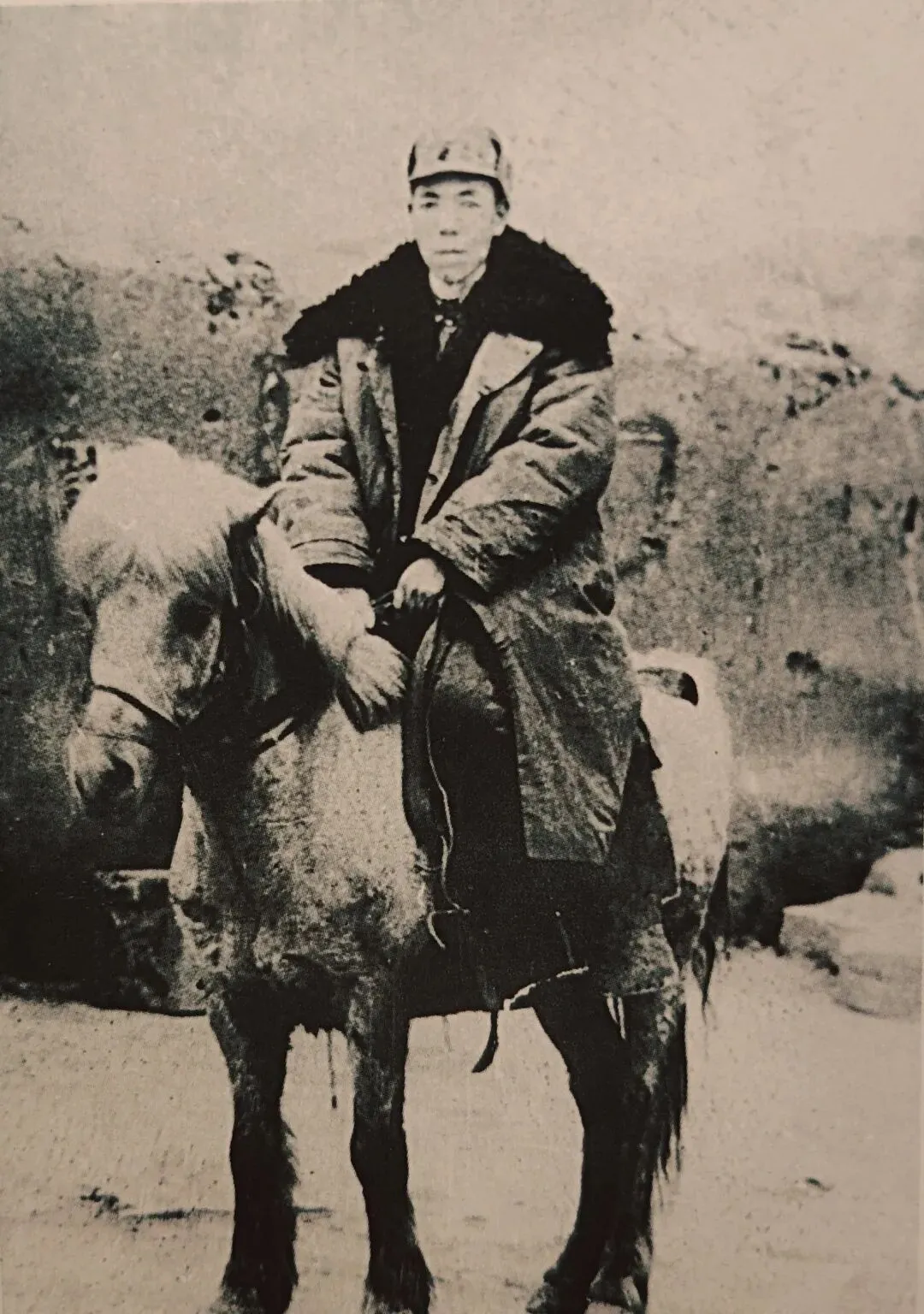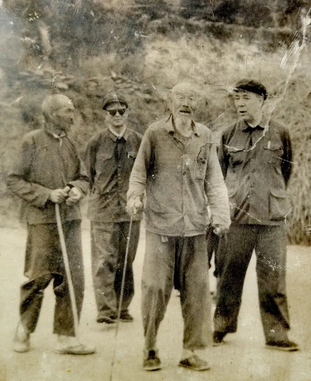 拄拐杖的为黄连河村民,右一是王世泰夫人魏乃,右二是王世泰,后边是王世泰侄子王怀玺(青海独立师副师长)——洛川民艺会馆藏