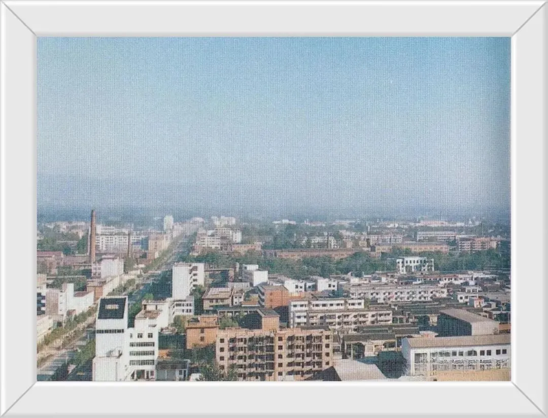 昔日的沁阳街道,能清楚的看出宽阔的沥青路面,划分了双向车道,路旁还种植了行道树,绿油油的很干净。远处能看到烟囱、正在建设的工程,可以看出90年的的沁阳正在飞速发展中。