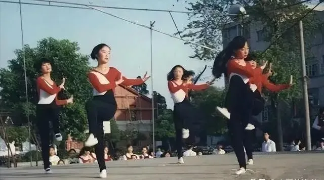 女同志们穿着紧身裤跳健美操 , 特别时髦。 那时候的时尚 , 朴素 , 但有精气神。