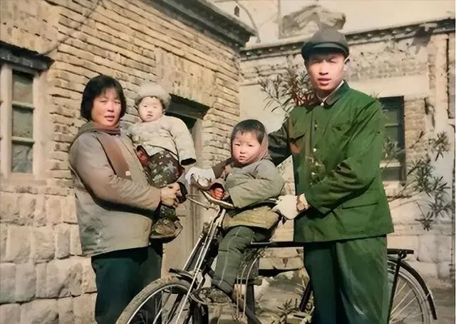 那张老照片 , 衣服是那个年代的 , 自行车是那个年代的 , 连拍照姿势都是那个年代的。