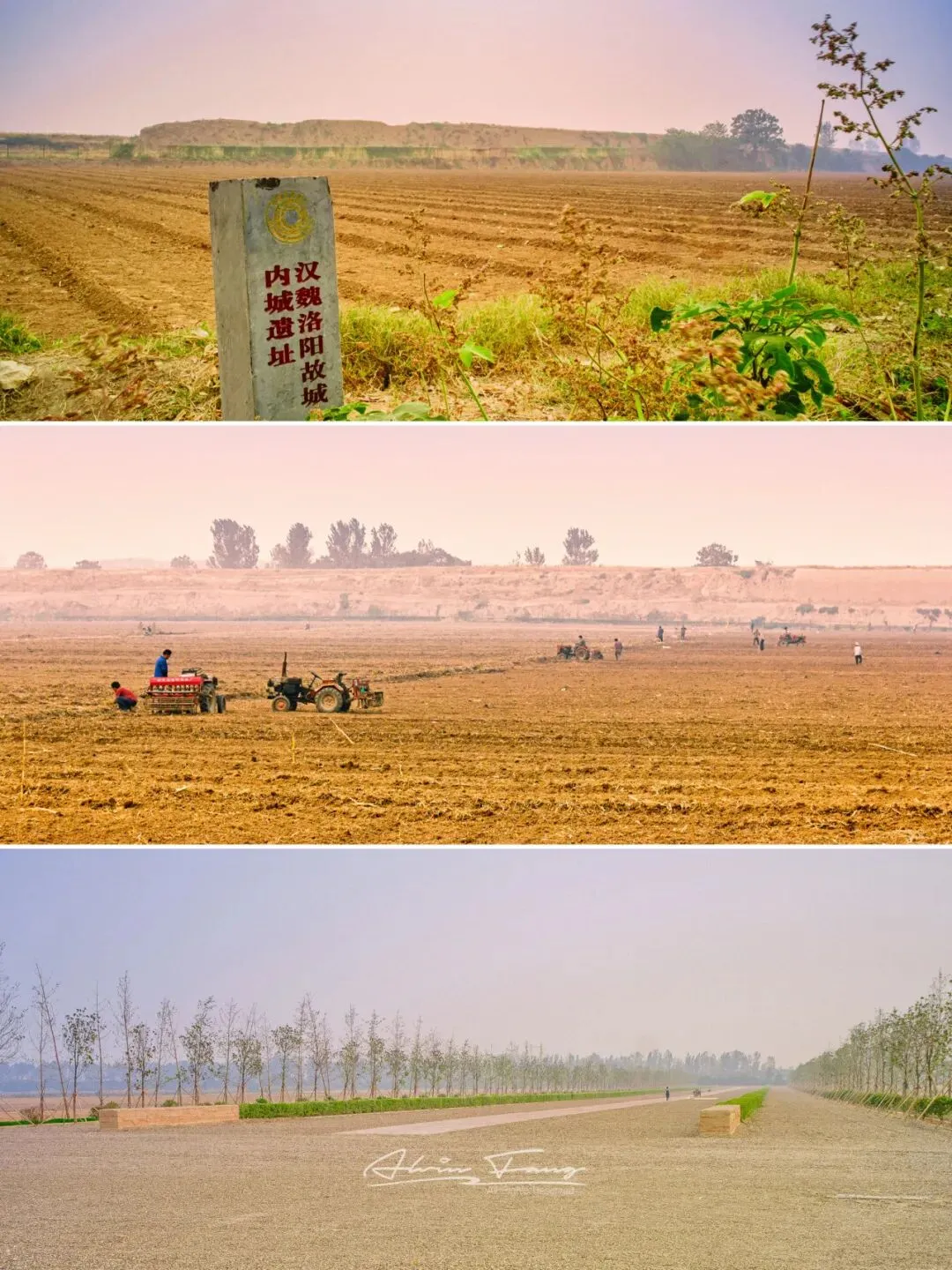 遗址上,40米宽的中轴线大街遗迹尚存,殿名太极,门名阊阖,街名铜驼,皆有史可考,不远处还有永宁寺的塔基矗立在高台上。