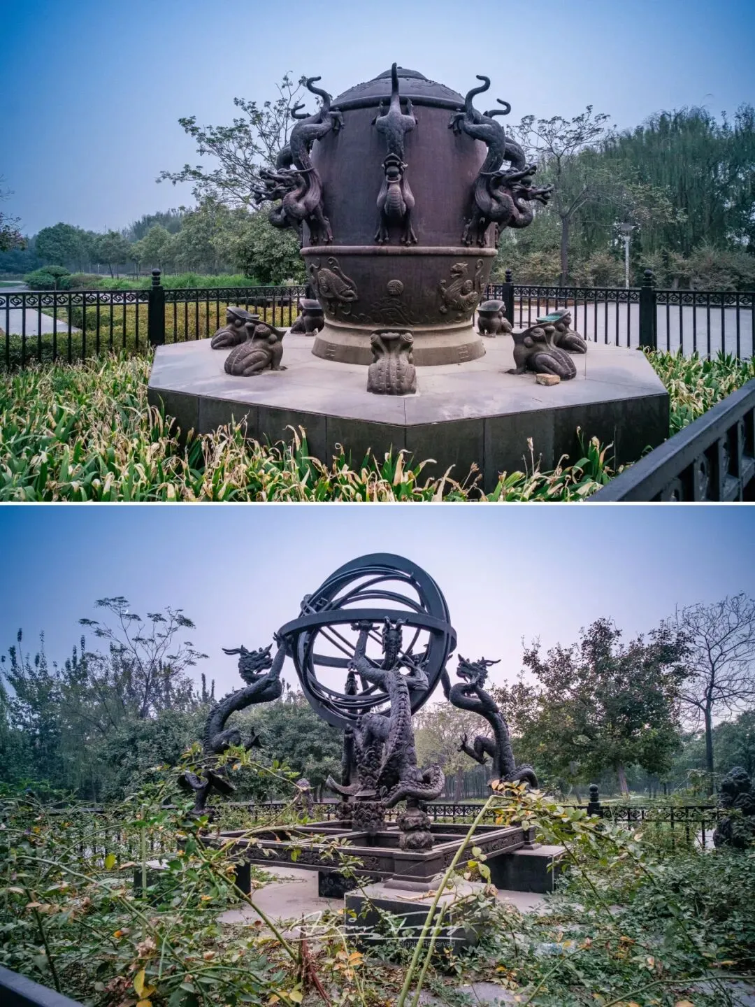 与明堂相对的灵台,始建于东汉光武帝时期,张衡曾在此观测天象,其发明的浑天仪和地动仪是民族辉煌的象征。如今,灵台草木丛生,辟雍只剩残碑。