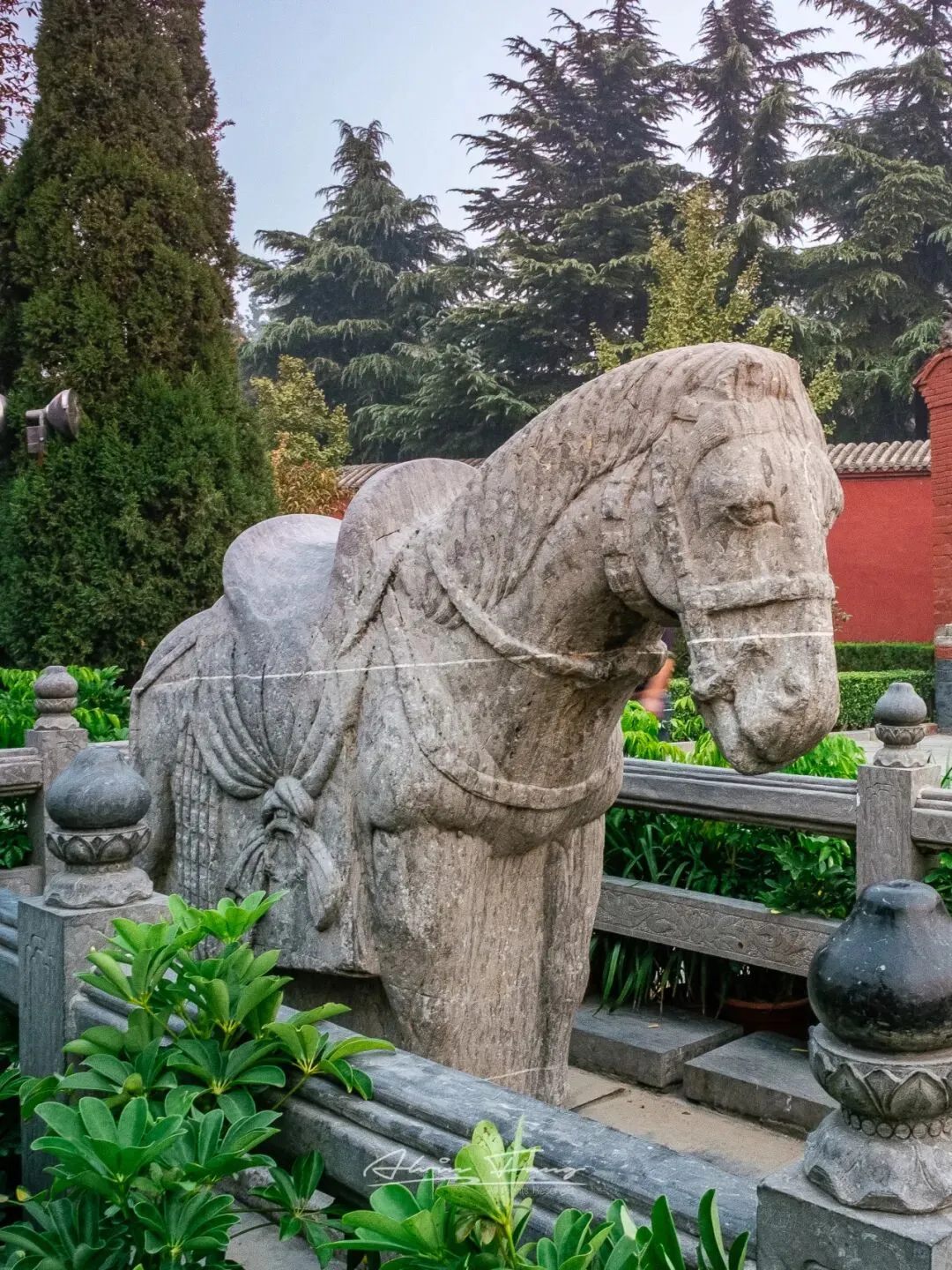 白马寺被中国佛教寺院尊为“释源”,寺内苍松翠柏,山门“白马寺”三字是东汉遗刻,门前石马是宋代石雕,寺内供奉着元朝夹纻干漆工艺所制造像。