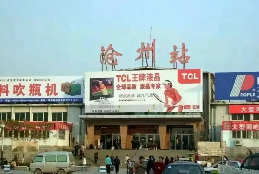 下图沧州火车站,大楼外面挂满了广告牌,几十年不变…