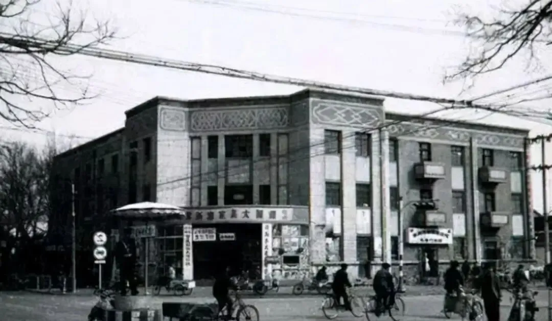 下图人民剧院,门口人山人海,大家都去凑热闹。你有去看过电影吗?