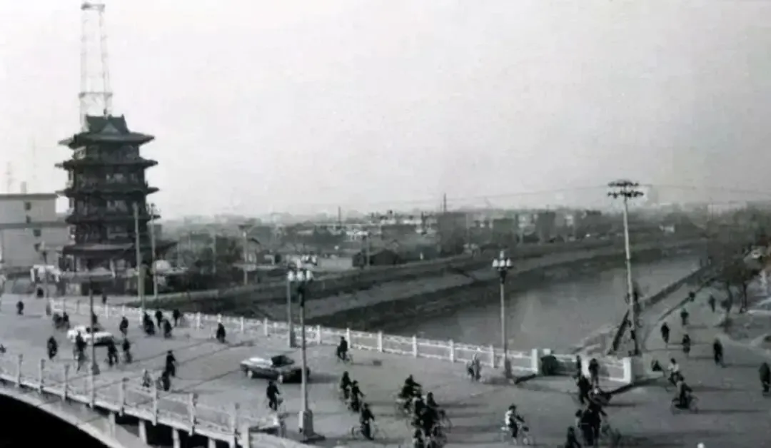下图80年代的解放大桥。行人汽车混在一起过桥。