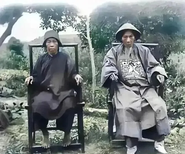 这是位县太爷和他妻子的合照 , 据说是个清官。 清代基层官吏如果不贪 , 日子其实挺难过的 , 俸禄不高 , 还得自己掏钱养手下人。 边远地区朝廷都不管 , 真的是家里有矿才能当清官。