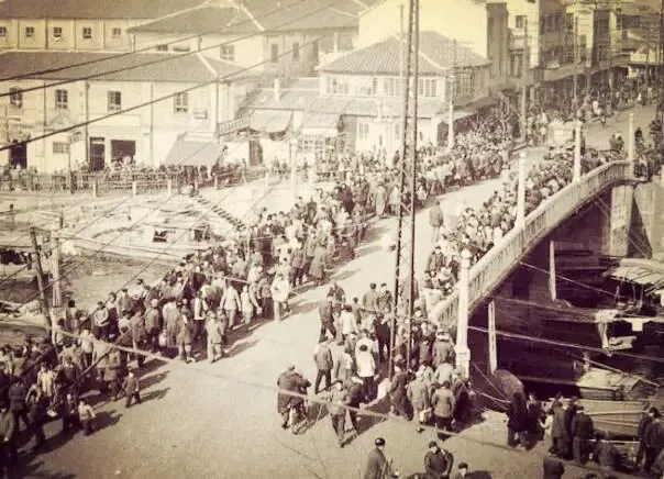 - 工运桥位于无锡火车站之南,横跨古运河,是旧时进出城的必经之路。在这张老照片中,可以看到工运桥正在进行拓宽施工,桥两头和桥面上站满了围观的人群。